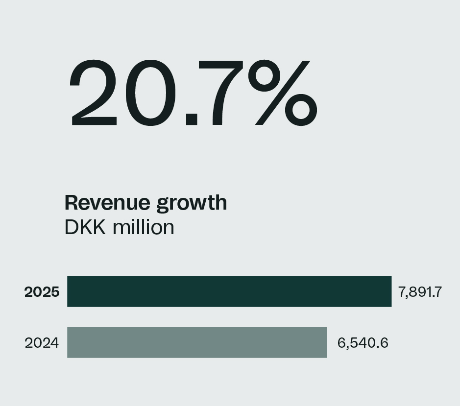 Netcompany Denmark grew by 7.6% driven by growth in both the public and private segments. Additionally, margin improved driven by gradually improved utilisation.